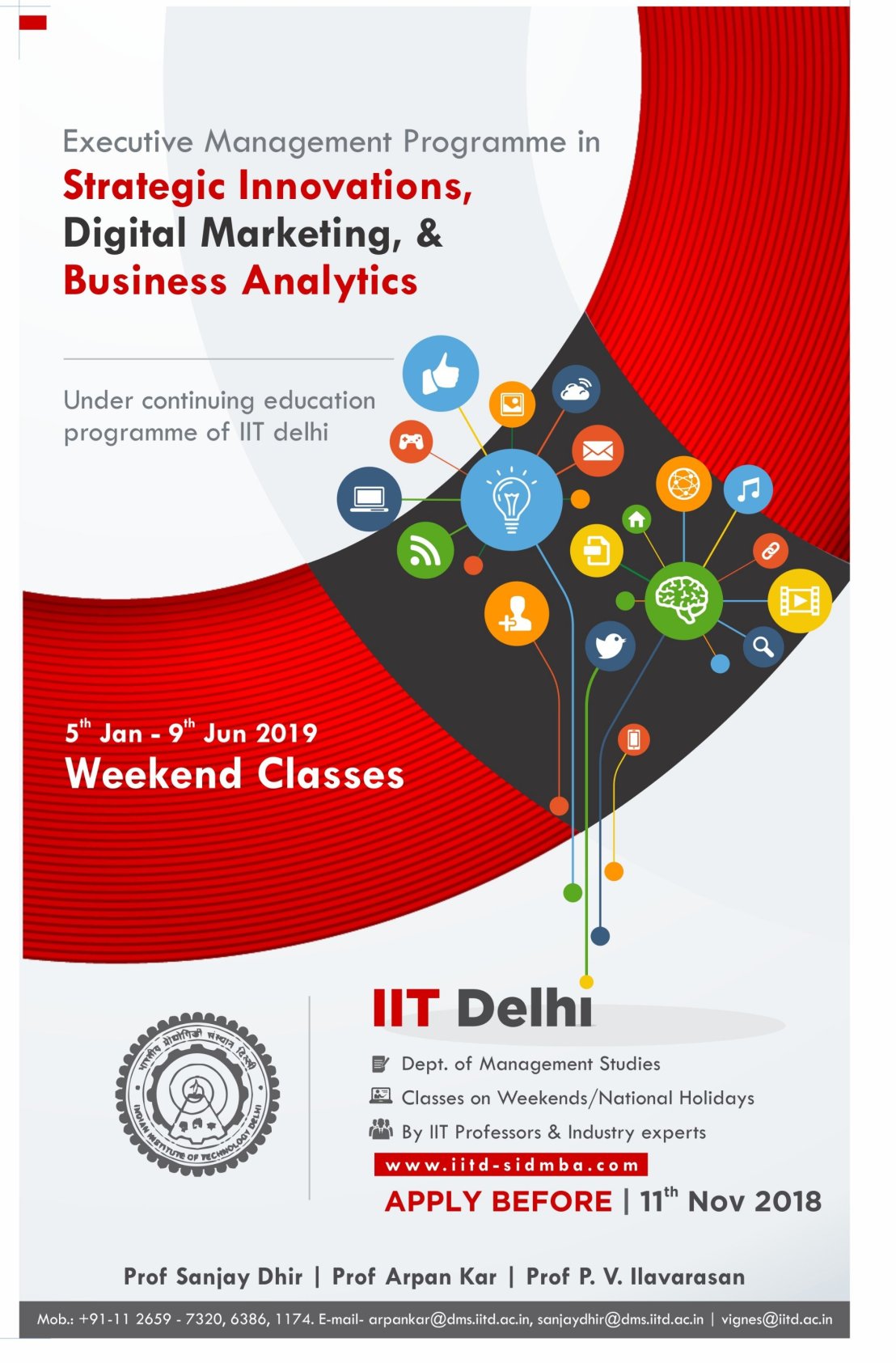 How to Apply: Please fill the online application form. Fill the declaration form, print and send along with the self-attested copies of educational and work experience certificates to support your online application to: Prof. Arpan Kar, Programme Coordinator, Room 501, Department of Management Studies, Vishwakarma Bhawan, IIT Delhi, Hauz Khas, New Delhi-110016. Submission of both online application form and hardcopy declaration form along with supporting documents is mandatory.