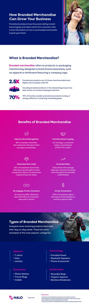 Branded merchandise can be a powerful tool to grow your business by increasing brand awareness and generating customer loyalty. When customers wear or use your branded items, they act as walking billboards, which helps promote your brand to others. Branded merchandise can also strengthen customer relationships by creating a sense of community. Overall, by creating well-designed and high-quality branded merchandise you can differentiate your business from competitors and build a recognizable brand identity. If you are interested in learning even more ways branded merchandise can grow your business, check out the resource below.
